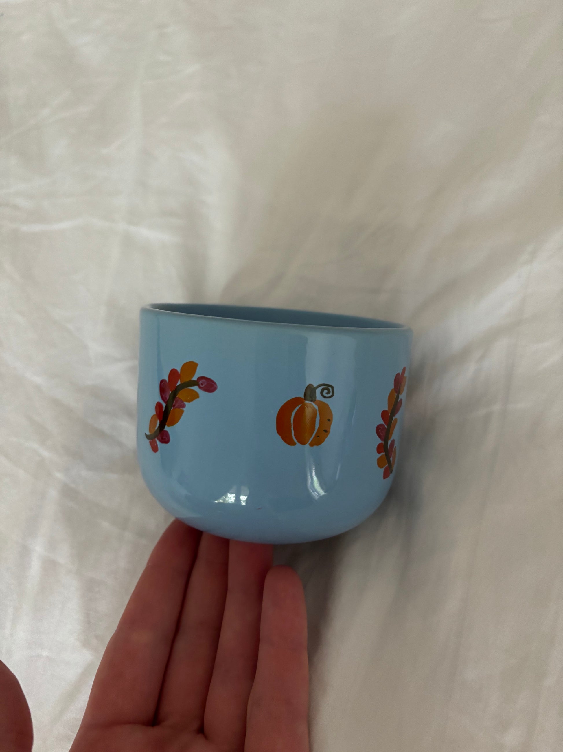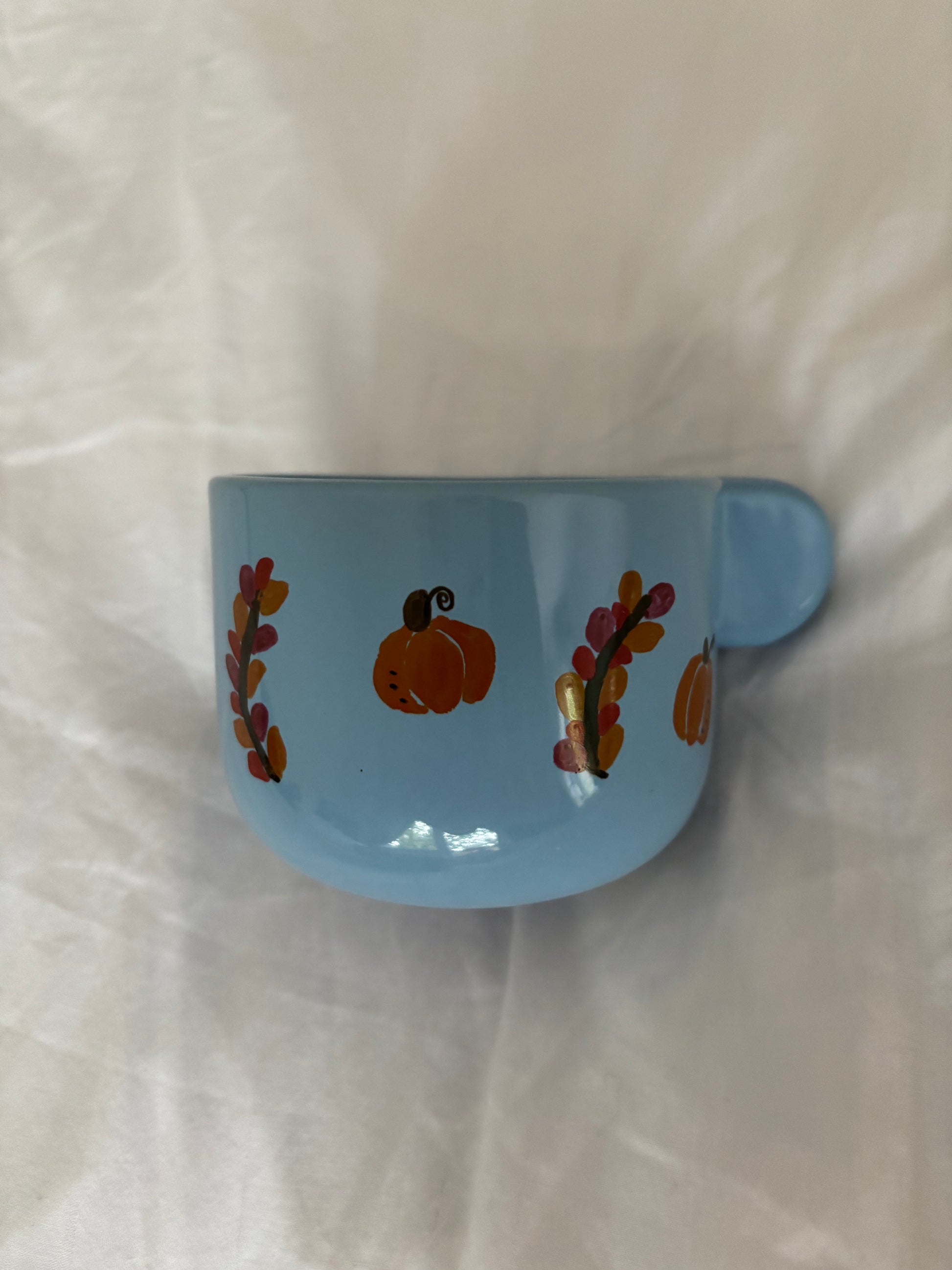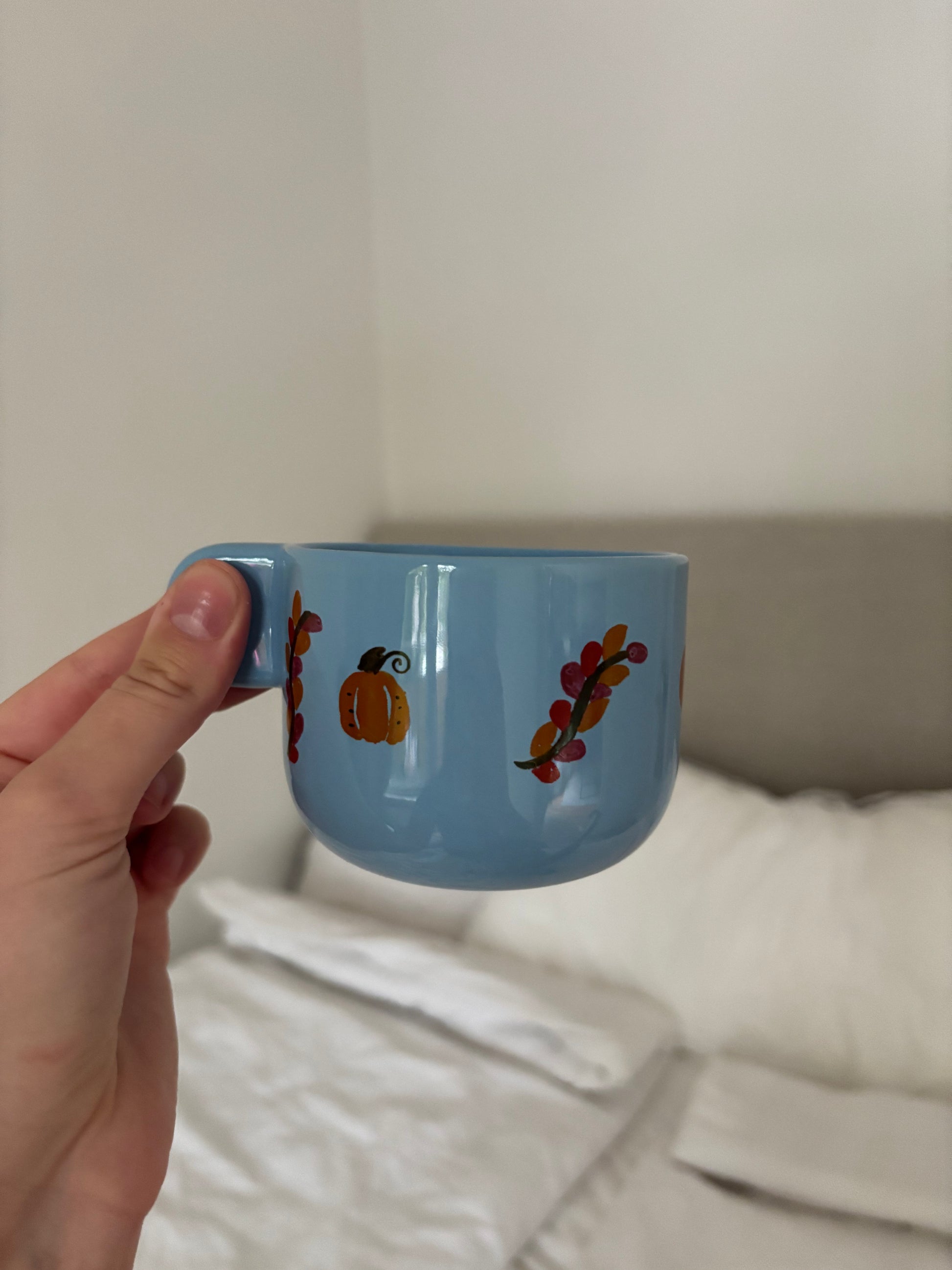 Cozy är en handmålad mugg i blått.